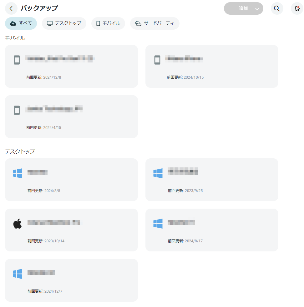 各デバイスのバックアップ
