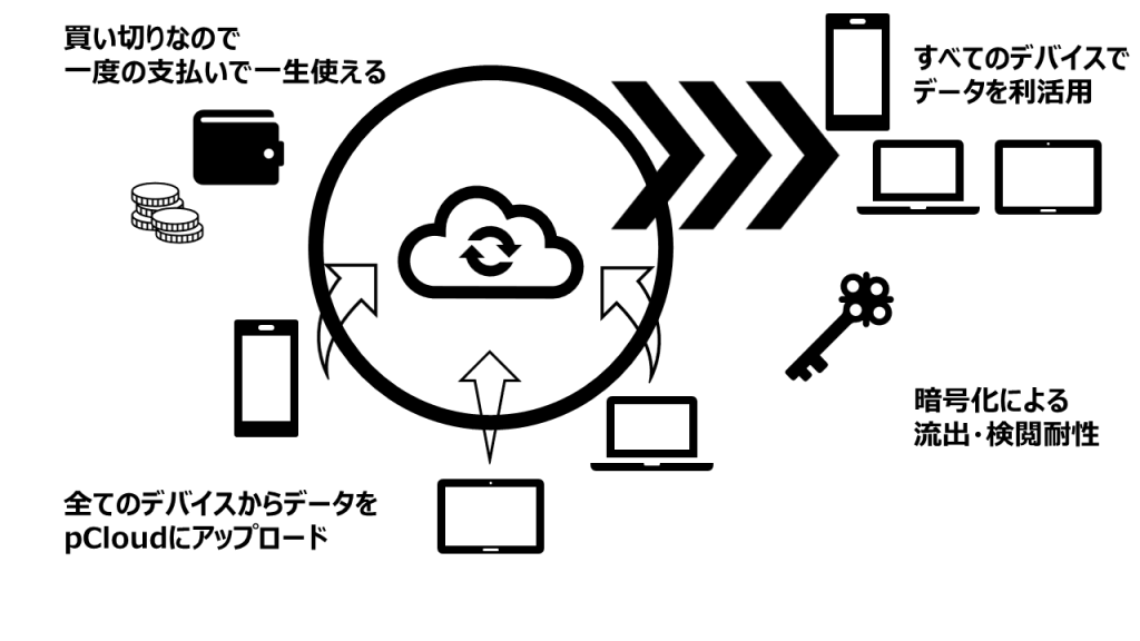 pCloudは、他の大手クラウドストレージサービス(Google Drive、Dropbox、OneDrive、iCloudなど)と異なり、一度の支払いで生涯利用できる「ライフタイムプラン」を提供しています。