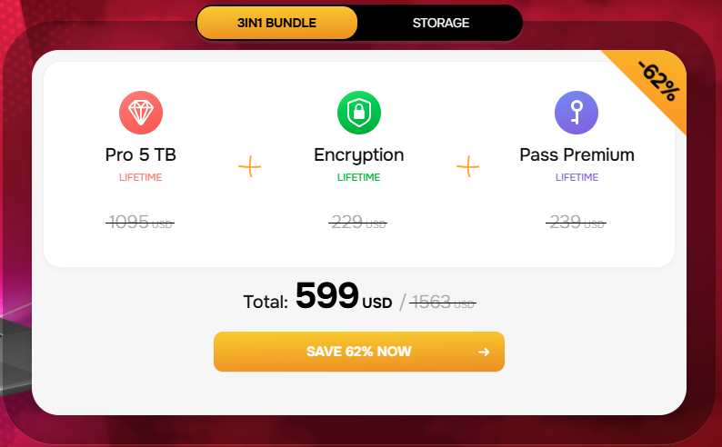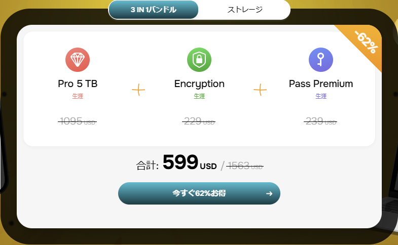 pCloudはオプションサービスとして暗号化サービスのpCloud Encryption (Crypto)とパスワード管理サービスのpCloud Passも提供していますが、これらのオプションサービスも「ライフタイムプラン」を提供しているので、オプションサービスも含めて買い切りにしてしまうことができます。