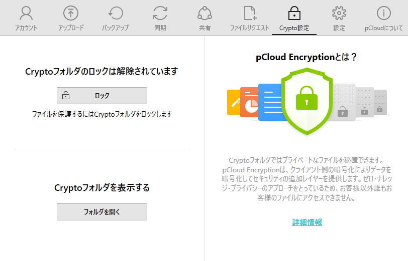 pCloud Encryption (Crypto)は、暗号化によって大切なデータを安全に守るための仕組みです。Cryptoフォルダに保存されたファイルはすべて暗号化による保護を受けます。