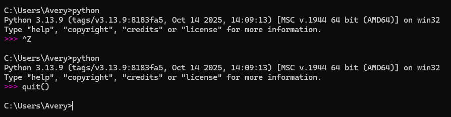 Ctrl + Zもしくはquit()でインタープリタを終了することができます。